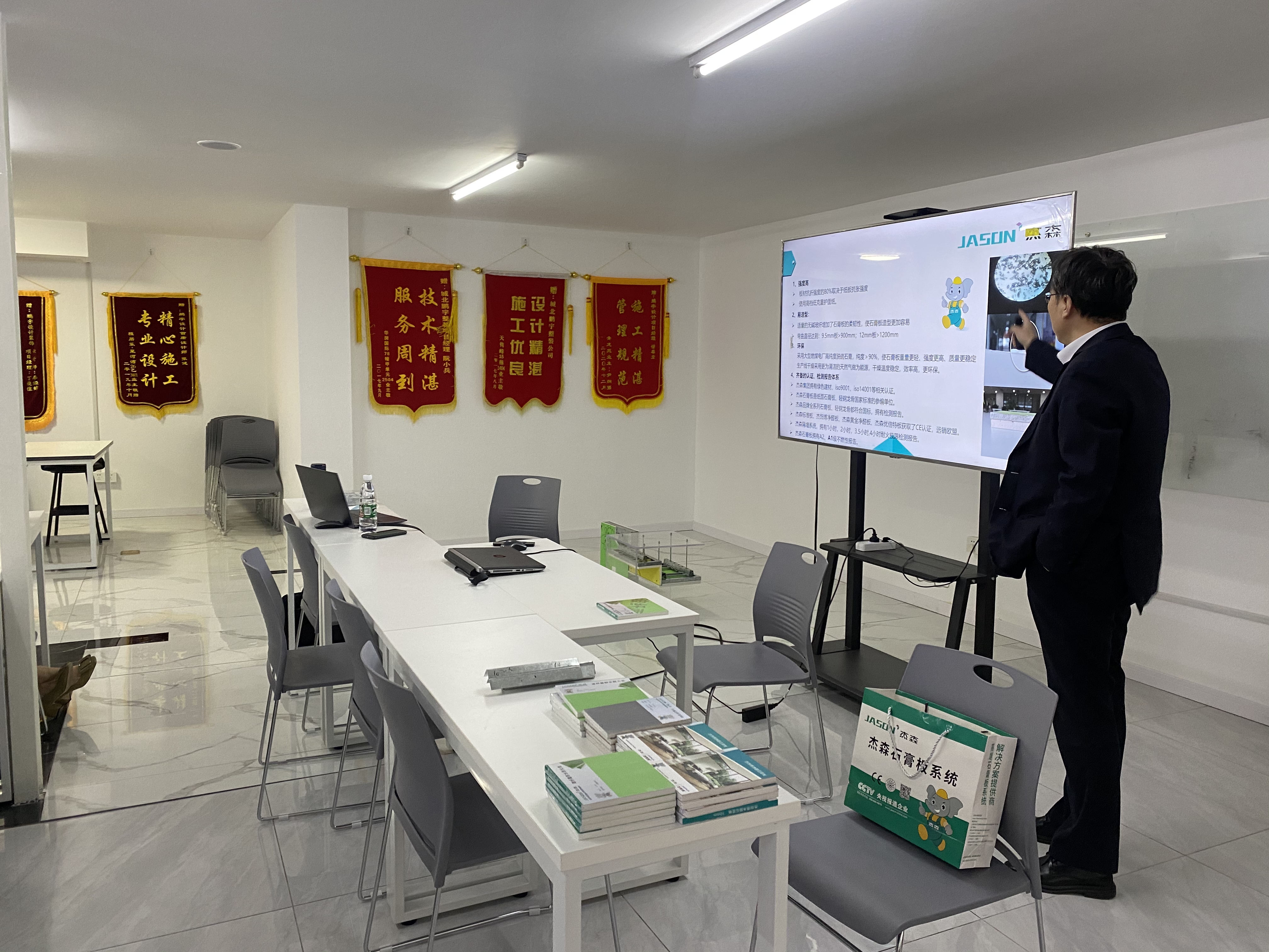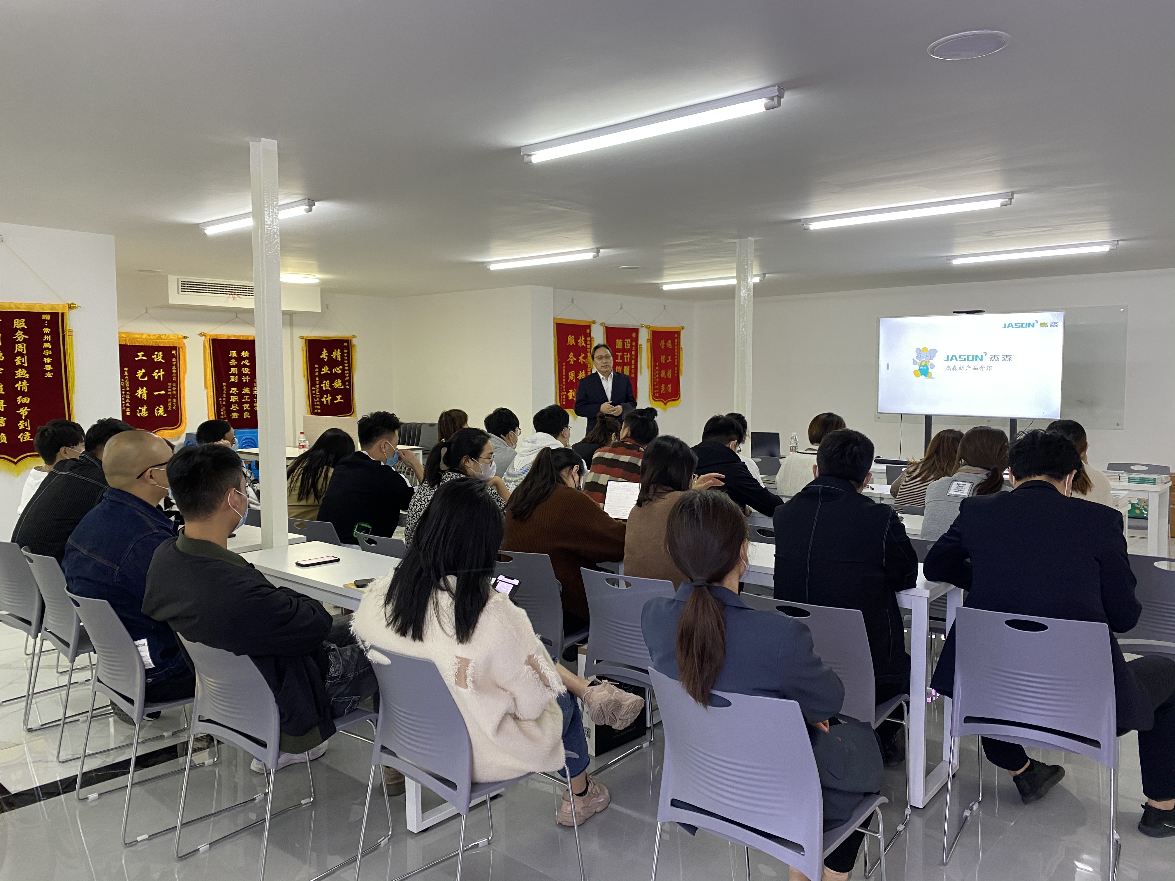 近日,由常州鵬宇裝飾有限公司主辦的杰森石膏板專場推介會在鵬宇裝飾總部設計中心成功舉辦,鵬宇裝飾設計中心相關領導,杰森石膏板東部技術負責人唐靜波以及來自設計中心的設計師及相關工作人員40余人共同參與。作為杰森石膏板新品推介系列活動之一,杰森專場推介會與設計師們形成了良好互動,現場氛圍熱烈、掌聲陣陣。